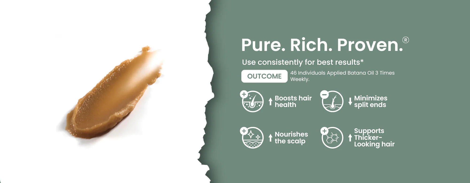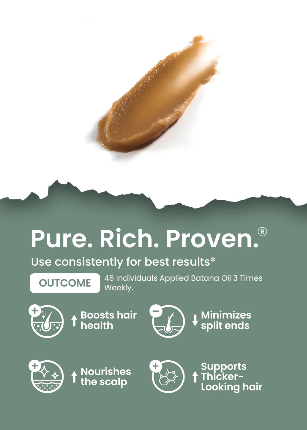 Unlock the power of Batana Oil the appearance of thicker-looking hair. Supports hair strength and fullness.
